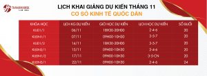 ✏ LỊCH KHAI GIẢNG DỰ KIẾN THÁNG 11 CƠ SỞ 4 ĐẠI HỌC KINH TẾ QUỐC...