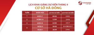 Lịch Khai giảng dự kiến tháng 9 tại THANHMAIHSK cơ sở 3 – Hà Đông...