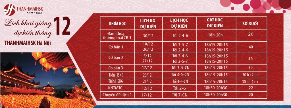 HOT HOT HOT!!!! Năm mới, lịch học mới, ưu đãi mới, tâm thế mới nào các bạn!!!!! LỊCH KHAI GIẢNG DỰ KIẾN THÁNG 1/2017 1. KHÓA HỌC ĐÀM THOẠI THƯƠNG MẠI 1 ? Đối tượng: Các bạn yêu thích học tiếng Trung, có nhu cầu học luyện giao tiếp cơ bản trong thời gian ngắn, học…