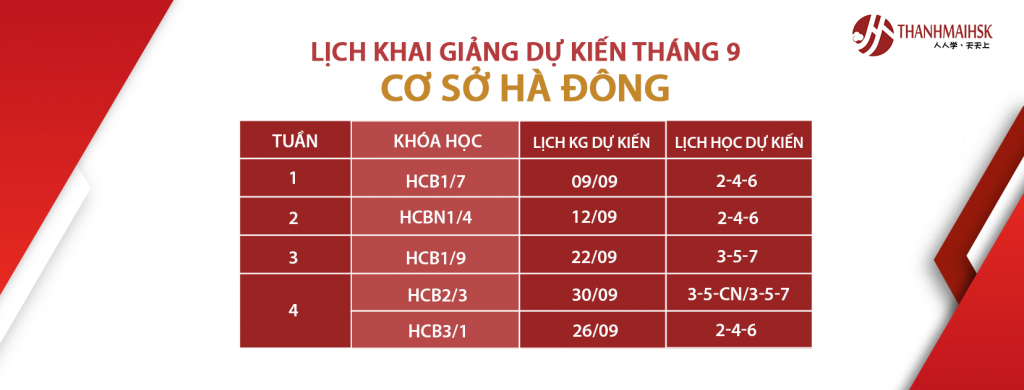 Lịch Khai giảng dự kiến tháng 9 tại THANHMAIHSK cơ sở 3 – Hà Đông đã có. Xem ngay để tìm lớp học phù hợp với nhu cầu và thời gian của bạn nhé! *Lịch khai giảng dự kiến có thể thay đổi tùy theo nguyện vọng học viên. KHOÁ HỌC CƠ BẢN 4 KỸ…