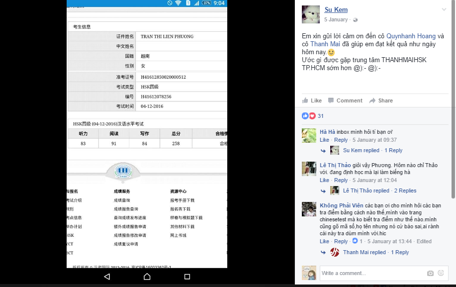 Chỉ trong vòng 3 tháng, với những cố gắng, nỗ lực của bản thân cùng 1 lộ trình chính xác, cụ thể từ THANHMAIHSK, bạn Trần Thị Liên Phương đã đạt được điểm số 258 điểm HSK 4. Liên Phương đã vô cùng hạnh phúc và tự hào chia sẻ trên facebook cá nhân khi những…